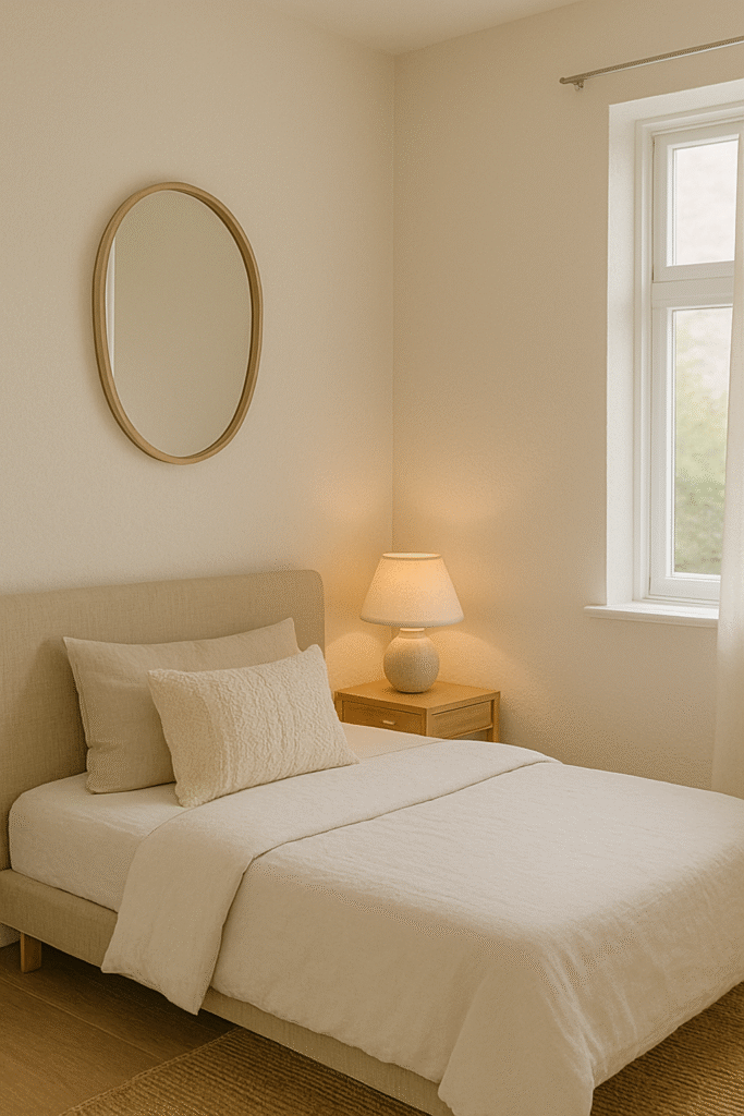 Light colors reflect natural light, instantly opening up a small room. Soft whites, gentle pastels, or warm creams can make walls feel airy without feeling cold. Try keeping your walls and textiles in the same tonal family to avoid visual clutter.