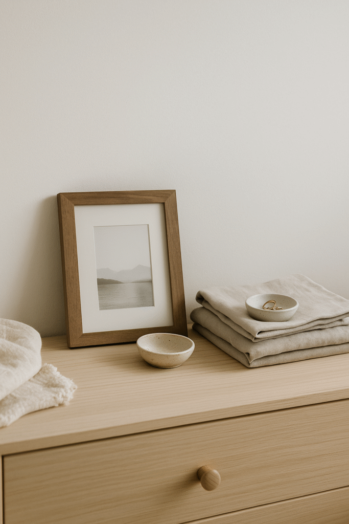 A photo, a handmade item, or a book you love — just one or two personal elements make the space feel lived-in without crowding it.