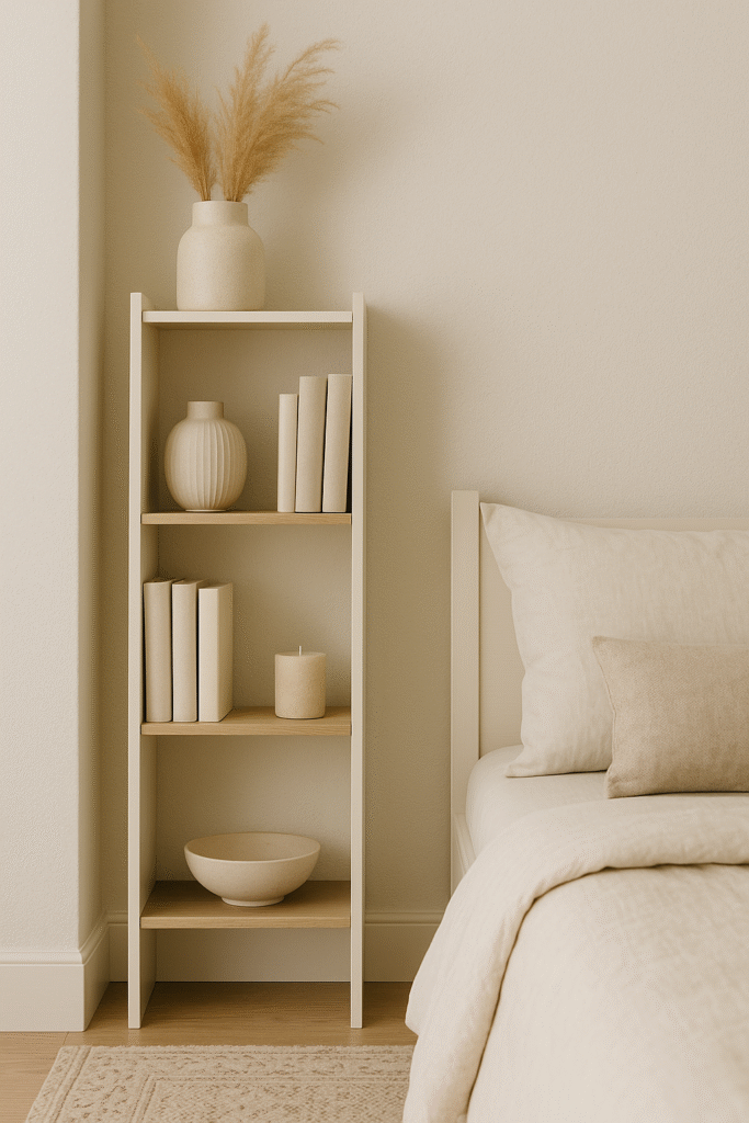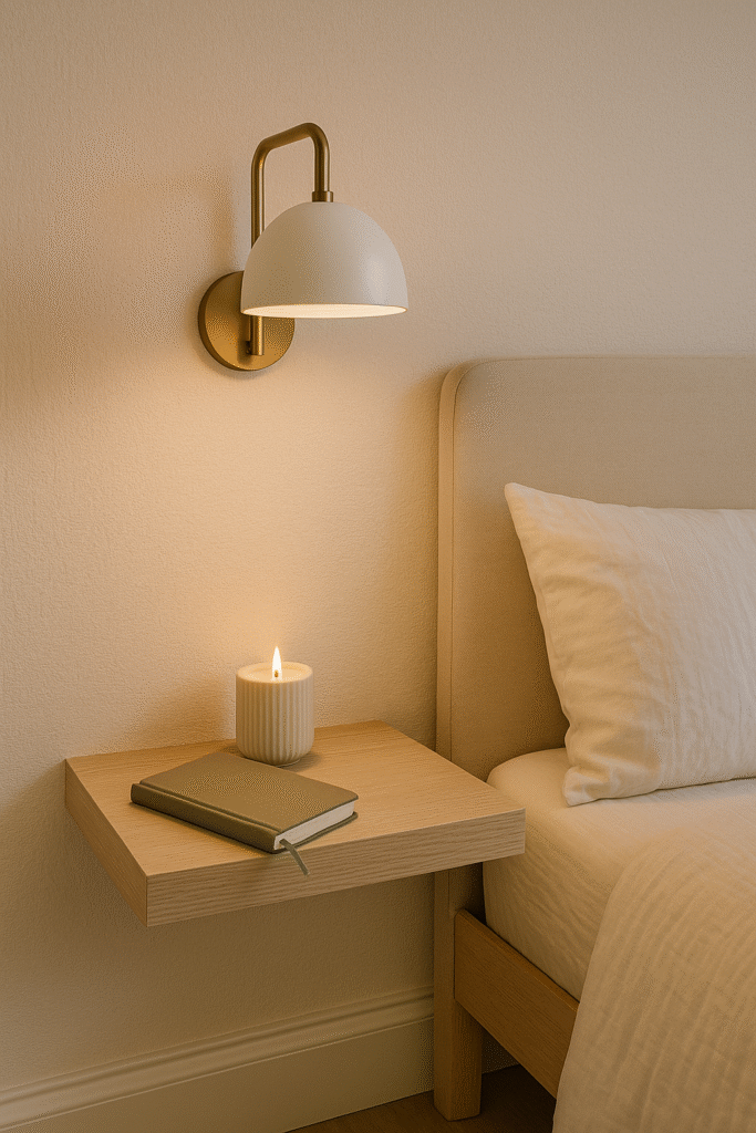 Wall-mounted or floating nightstands visually open the floor and add breathing room, especially in tight spaces. They’re functional without feeling heavy.